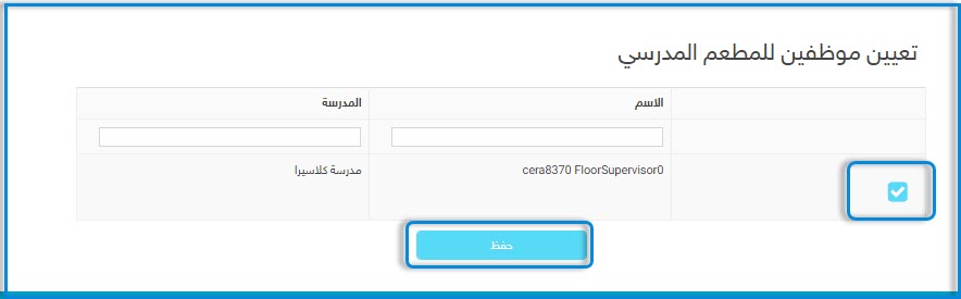 ملحوظة: الطلاب هم فئة المستخدمين الوحيدة التي يُمكن أن يتم تعيينها للمقصف.